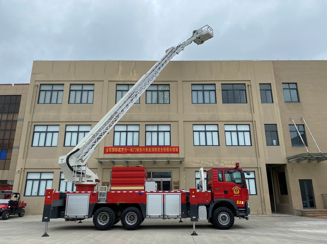 最后,松門鎮(zhèn)消防隊員為各參與人員展示了云梯救人演練,此云梯總長37米,造價400萬,消防云梯設有液壓升高平臺,供消防人員進行登高撲救高層建筑、高大設施等火災,營救被困人員,搶救貴重物資以及完成其他救援任務。在演練中,參與人員積極配合登上樓頂,等待云梯升起救援,使得整個過程順利進行;