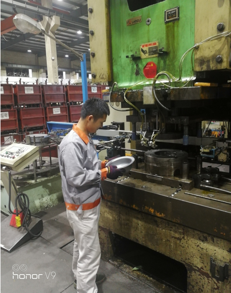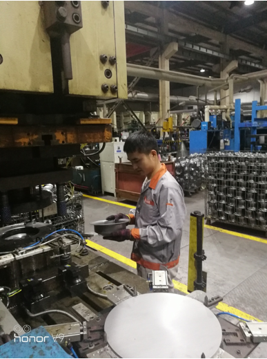 銳意創(chuàng)新,厲行節(jié)約,積極推動(dòng)班組生產(chǎn)工作跨上新臺(tái)階。如六寸沖壓人工抬料改自動(dòng)料吸裝置,提高生產(chǎn)效率 減少員工作業(yè)勞動(dòng)強(qiáng)度。從原來(lái)未改進(jìn)前一天生產(chǎn)5214片 到改進(jìn)后一天生產(chǎn)5929片,效率提升8.7% 六寸滾圈由于對(duì)焊焊接好后流到滾圈工位因鋼圈較小生產(chǎn)速度快流下來(lái)滾圈來(lái)不及冷卻導(dǎo)致滾圈操作工取鋼圈時(shí)手燙傷氣泡。后經(jīng)考慮滾圈至整形工序再不減少日產(chǎn)量同時(shí)提出使用機(jī)器人代替人工操作,給公司節(jié)約人工成本一年4—5萬(wàn)元左右。
