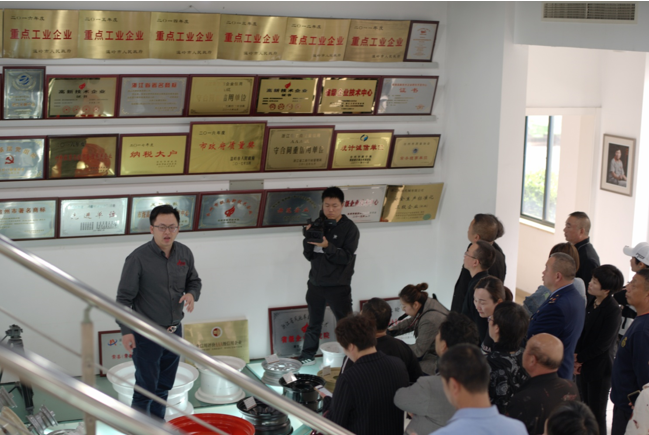 潘總裁在依序引領(lǐng)各體驗(yàn)者們參觀(guān)了產(chǎn)品展示區(qū)、計(jì)量室及公司辦公區(qū)域后,一起帶領(lǐng)生產(chǎn)總監(jiān)蔡云峰、總裁辦主任趙錦翔共同陪同各體驗(yàn)者參觀(guān)了我司的各生產(chǎn)區(qū)域,在參觀(guān)途中,由三位領(lǐng)導(dǎo)分批對(duì)各體驗(yàn)者們?cè)敿?xì)講解了我司的生產(chǎn)工藝流程、產(chǎn)品制造特性、機(jī)器換人、模具制造及我司的特殊工藝等等,同時(shí)媒體記者也在緊隨著全程拍攝報(bào)道,行業(yè)專(zhuān)家、人大代表及各品牌消費(fèi)者參觀(guān)后紛紛表示對(duì)我企“品質(zhì)標(biāo)”品牌的一致認(rèn)同。